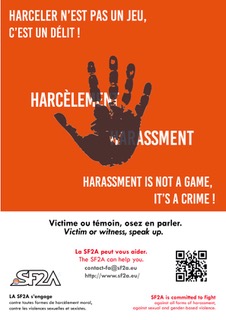 A l’occasion de ce lancement,  la SF2A a annoncé une campagne d’affichage contre le harcèlement qui reprend celle conduite actuellement à l’IRAP pour l’étendre à tous les laboratoires AA de France.